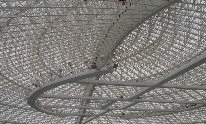 该网架加工大安公司名目师表示,比来几年来国内能源根底设置装备摆设装备摆设建立步伐加快,包括核电站用钢、风电用钢、锅炉用钢架等,表现出历久需要茂密。铁路纽带运输本领已经发展成为纽带和纽带的一种趋势。诸如城市地铁、轻轨、城铁和高架桥等城市建筑用钢范围将会不休承继减少。在当下国内倡导的绿色低碳的可承继发展理念下,可摄取材料将会呈现网架化结构室第高速发展的卓越趋势。